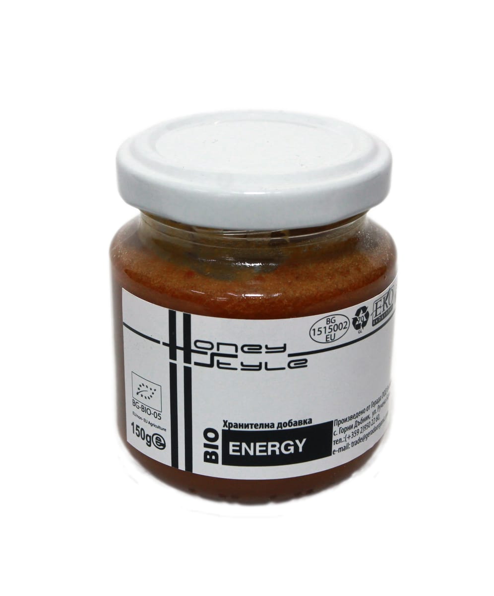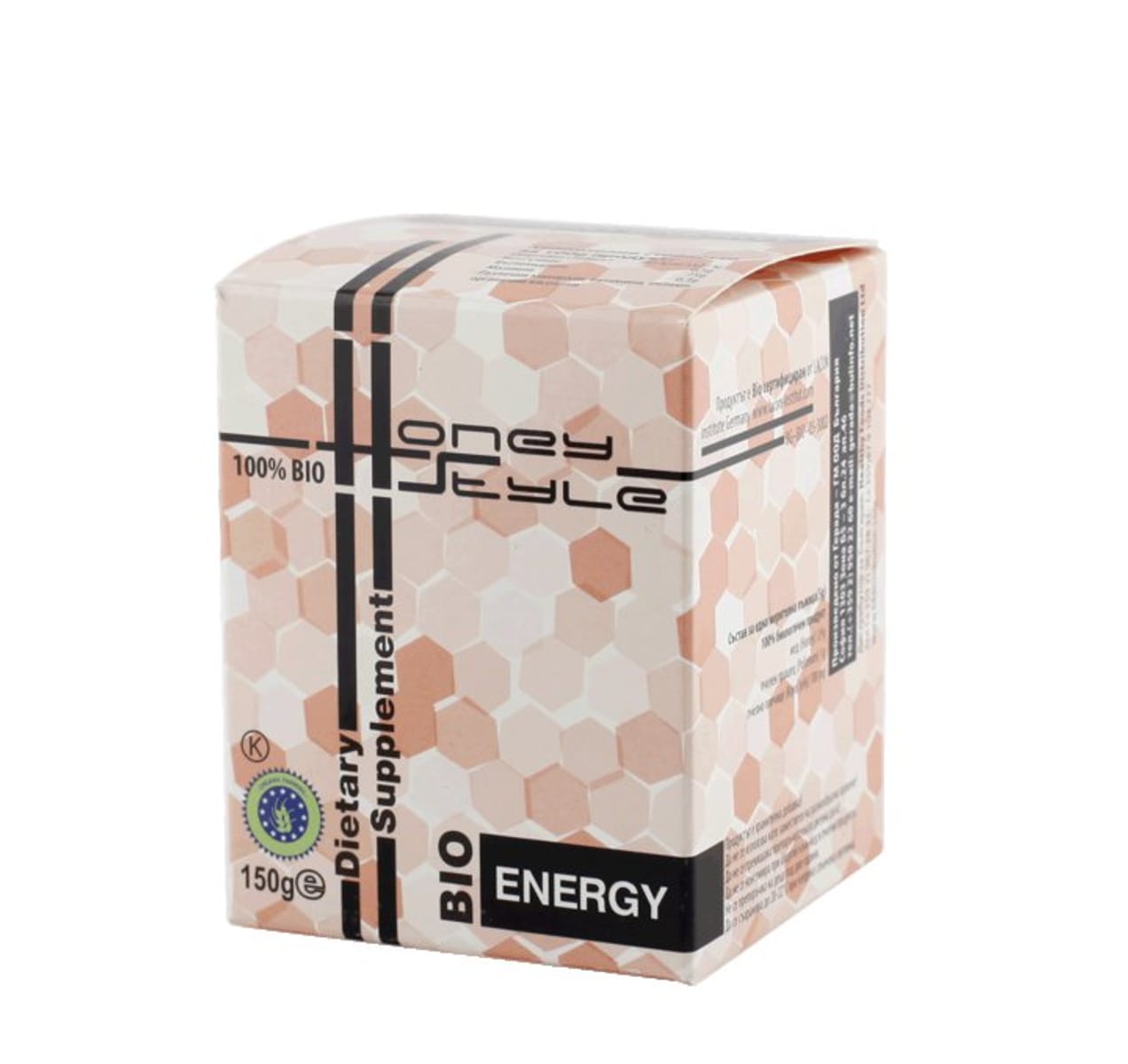 Honey Style Bio Energy е висококачествена хранителна добавка, съставена от 100% естествени, биологично сертифицирани пчелни продукти — пчелен мед, цветен прашец и пчелно млечице. Тази мощна комбинация е естествен източник на незаменими аминокиселини, витамини, белтъчини, минерали, ензими и антиоксиданти, които подпомагат жизнеността и общия тонус на организма.