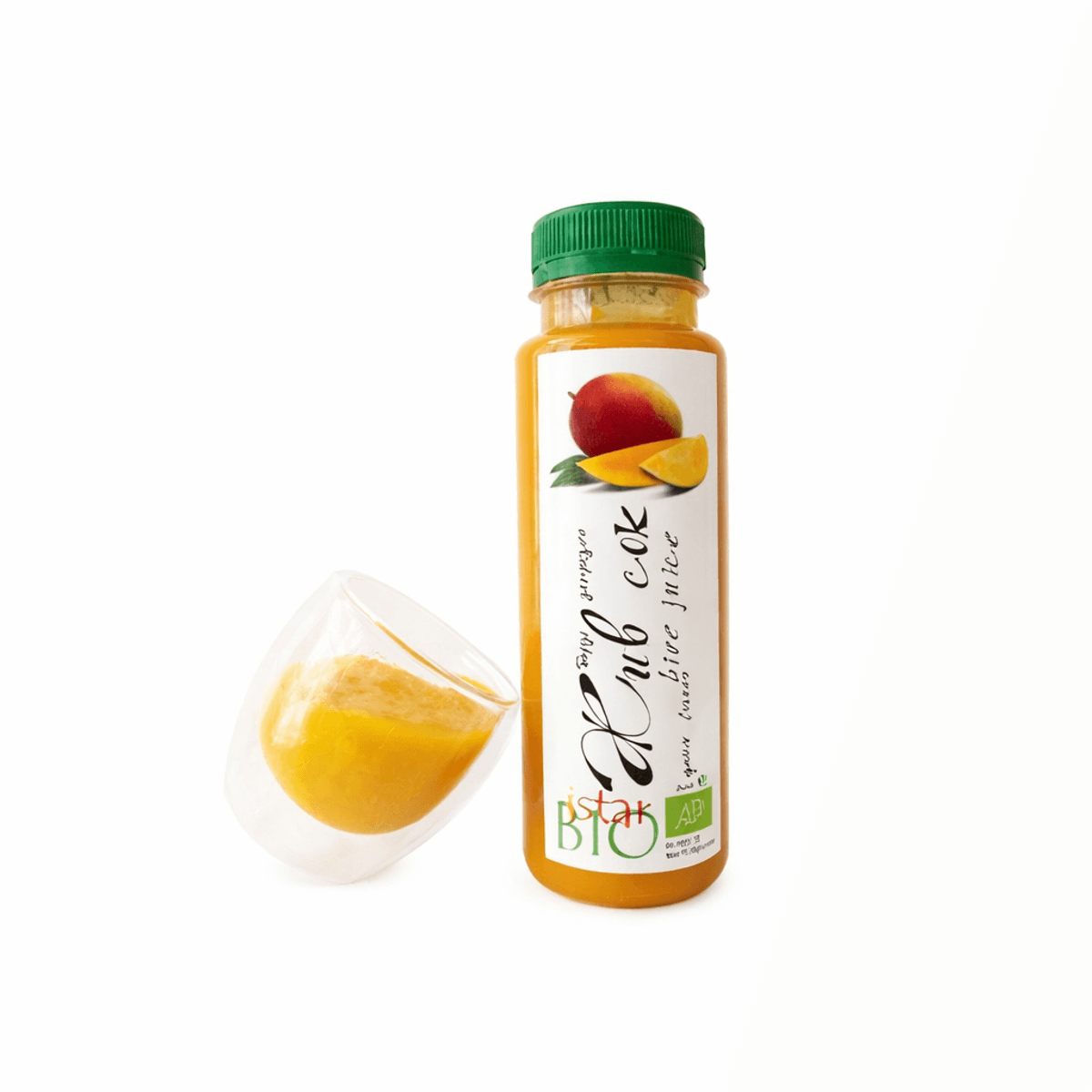 Жив сок Манго е 100 % студено пресован био сок от зрели манго плодове – екзотичен, кадифен и наситен. Без нищо излишно. Само богатство от вкус и нутриенти, директно от природата. Жив сок Манго е перфектен за моментите, когато искаш да се поглезиш с нещо наистина вкусно и полезно – лъжица слънце от тропиците в бутилка.